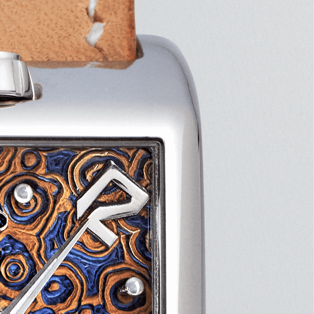 Son design innovant intrigue autant que sa forte personnalité. Portée avec une inclinaison de 45° sur le côté du poignet, Qartel offre une lecture de l’heure directe, intuitive et naturelle, sans avoir à tourner le poignet.