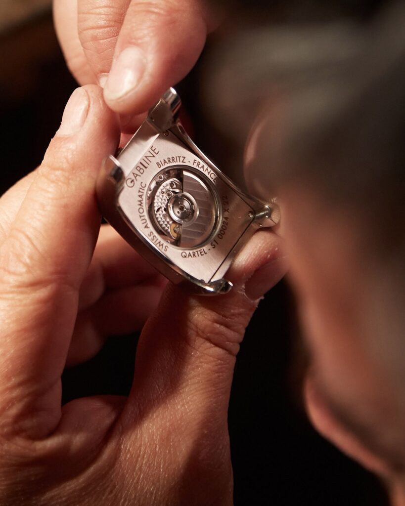Pensée comme un prolongement de notre modèle iconique Qartel, la Petite Qartel incarne en tout point l’esprit GabLine : un porté singulier, une expérience unique et une fabrication française d’exception, rehaussée par la précision d’un mouvement suisse.
